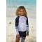 Avec ce T-shirt anti-UV blanc de JUJA, de la marque néerlandaise de vêtements anti-UV, même les plus petits peuvent profiter du soleil, de la plage et de la mer tranquillement et de façon protégée. Le T-shirt est blanc à manches longues. Sur la poitrine, le logo caractéristique de JUJA. Le T-shirt protège le ventre, les épaules, le dos et les bras des effets nocifs que peut avoir le soleil sur la peau. N'oubliez pas d'appliquer de la crème solaire sur les parties du corps non couvertes ! Le T-shirt est conçu à partir d'une matière polyester extensible à sèchage rapide. Elle est confortable à porter et n'irrite pas la peau. Ce qui rend cette matière si particulière, c'est qu'elle est fabriquée à partir de bouteilles PET recyclées. Avec une protection UPF 50+, la combinaison anti-UV bloque jusqu'à 98 % des rayons UV nocifs, de sorte que la peau couverte par le tissu n'a pas besoin de crème solaire. Le T-shirt anti-UV a un col rond. A propos de JUJA : JUJA est la marque haut gamme néerlandaise de vêtements anti-UV, qui privilégie non seulement ; la prévention des effets nocifs du soleil, mais aussi la durabilité de sa matière première. JUJA a été lancée par Jan Willem van der Sterre. Il est le propriétaire d'UV-Fashions, le plus grand distributeur européen de vêtements et accessoires anti-UV. Depuis qu'il a perdu son père à cause d'un cancer de la peau, il s'est donné une mission importante : éradiquer cette terrible maladie, car le nombre de patients atteints de cancer de la peau continue d'augmenter. Le nom de la jeune marque 'Juja' signifie Julia et James, la fille et le fils de Jan Willem. Il vise à protéger non seulement les siens, mais tous les enfants contre les rayons UV nocifs pour réduire le risque de cancer de la peau. Juja veut faire une différence dans le monde des vêtements de protection UV. Tous les vêtements Juja sont garanti UPF 50+ et bloquent plus de 98% des rayons UV. Les designs minimalistes mettent la qualité et la praticité en avant tout en fournissant un look intemporel et à la mode. Protégez votre enfant du soleil avec les vêtements anti UV Juja ! Les vêtements et accessoires lancés sur le marché par JUJA sont fabriqués à partir de bouteilles PET recyclées. Du plastique qui aurait probablement fini dans la rue ou dans l'océan. Avec les vêtements anti-UV de JUJA, vous protégez vos enfants des effets nocifs que peut avoir le soleil (à long terme) et vous contribuez également à un monde plus propre et plus durable. Des millions de bouteilles PET flottent dans nos océans et nos mers. Le plastique se détériore lentement en petits morceaux et ne se "décomposera" jamais entièrement et finira mangé par les poissons, les tortues et d'autres animaux (marins), avec toutes les conséquences que cela implique.