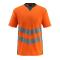 T-Shirt haute visibilité avec bandes réfléchissantes transversales en biais et tissu fluorescent.
