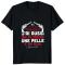 T-shirt humoriste figurant la phrase « J’ai une fille magnifique, j’ai aussi un flingue une pelle & un alibi » pour informer tous les pauvres bougres aux alentours qu’il ne vaut mieux pas avoir l’esprit aventureux sur votre plus beau trésor, sous peine de terribles représailles