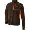 Des empiècements en mesh respirant de couleur orange fluo sont placés sous les bras pour favoriser la circulation de l’air et évacuer l’humidité même en cas d’effort intense. Cette conception hybride permet de maintenir une température corporelle stable, idéale pour la chasse, la randonnée ou toute activité dynamique en extérieur.