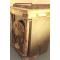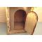 Caisse en sapin ressemblant à un temple grec. Elle comporte une porte sculptée sur le devant décoré avec un triangle sur fond rayonnant. C'est le symbole de l'œil de la Providence qui a été également utilisé par la Franc Maçonnerie.