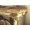 Peinte en gris, le décor plâtre est parti en de nombreux endroits et laisse apparaître le bois.