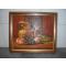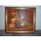 TABLEAU PEINTURE NATURE MORTE HUILE sur BOIS Fruits PECHE RAISIN