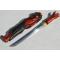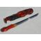 Beau poignard japonais Tanto à monture en bois sculpté à figure de Nio, lame shinogi sukuri nagasa 22cm, non signée, trempe droite suguha, polissage ancien avec une fine tache non corrosive, aucun défaut de forge. Monture en bois sculpté d'une personnage laqué rouge et noir sans accident hormis une petite fêlure à l'entrée de fourreau.