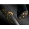 Lame de type hira tsukuri Kashira et fuchi au décoren relief et réhaussé à l’or. Ito en coton vert foncé.