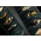 Tsuba en bronze. Habaki en cuivre. Saya constelléde nacre, décoré d’une carpe dorée sautant horsd’une mer agitée. Kurigata en laque noire.