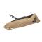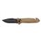 Le manche est constitué de deux plaquettes en polymère chargé de fibres de verre. Ces plaquettes sont vissées à la mécanique par des vis en acier inoxydable dont l'une d'elle loge astucieusement une lame coupe sangle. Cette lame courbe et interchangeable est conçue pour couper des sangles, des cordes et des ceintures de sécurité pour favoriser l'extraction en cas d'accident.