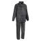 Tenue de pluie Percussion noire, veste et pantalon imperméables en polyester enduit PVC avec coutures étanches.