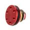 Tête de piston alu rouge 6 trous, upgrade airsoft, pièce gearbox, piston aluminium anodisé, étanchéité piston, composant custom moteur, accessoire tuning airsoft, piston haute performance, fiabilité gearbox, composant upgrade moteur.