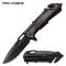 Système à ouverture assistée. Longueur fermé 12,06cm. Longueur de lame 8,89cm. Lame finition noire. Lame en acier 3Cr13. Plaquettes du manche en acier & insert gray pakkawood. Ouverture avec le flipper & le thumb hole. Fonction brise vitres. Fonction coupe ceintures. Clip de poche.