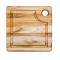 Planche à découper carrée en Teck avec rigole à jus et poignées (20,5 x 20,5 x 2 cm)