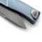 le manche est donc monobloc gràce au système SOLID de Lionsteel en titane anodisé bleu 6AI4V.