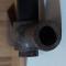Long manche en bois noir, sculpté d'une large prise en son milieu.