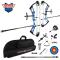 Viseur avec scope, repose-flèches compound, stabilisateur, viseur, décocheur à l'index, dragonne d'arc, dragonne de doigt, repose arc, housse souple, blason, cire à corde, corde à boucle en D de rechange et clés Allen.