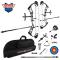Viseur avec scope, repose-flèches compound, stabilisateur, viseur, décocheur à l'index, dragonne d'arc, dragonne de doigt, repose arc, housse souple, blason, cire à corde, corde à boucle en D de rechange et clés Allen.