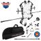 • Viseur avec scope, repose-flèches compound, stabilisateur, viseur, décocheur à l'index, dragonne d'arc, dragonne de doigt, repose arc, housse souple, blason, cire à corde, corde à boucle en D de rechange et clés Allen.