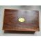 Cassette bois marquetté de dimensions extérieures 26 X 44 X 9 cm.