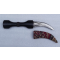 Très beau poignard de type Kandjar ou Khandjar. La poignée est de couleur noir, bois noble finement sculpté, solide, pas de jeu. La lame est très belle avec une gouttière centrale avec des étoiles et différentes autres motifs. Le fourreau est en tissu coloré, rouge, vert... Très beau et noble. Le poignard rentre parfaitement dans son fourreau. Rare pièce probablement utlisé par le Maroc ou la Turquie (à vérifier).