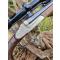 Elle est équipée d'une lunette ZEISS Diavari 1,5-6x42 réticule 1 sur montage à crochets. Dispose d'un magasin de crosse. Stecher sur la première détente. Ecailles de poissons décorent la crosse ainsi que le devant.