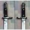 Superbe et belle baionnette / machette d'artillerie espagnole, modèle 1893 courte. Poignée en bois avec 2 rivets de chaque côté. Lame marquée au talon '' Artilleria CA D 1895 '' + '' 1205 ''. Lame dans son jus avec une gouttière centrale ! Pièce totalement originale !