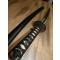 Il mesure 70cms de longueur totale et la lame fait 48cms de longueur.Le foureau est recouvert de peinture noire sur une âme en bois (il manque l'anneau coulissant de ceinture).