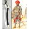 Superbe, très rare et massif sabre/palash d'officier britannique des troupes coloniales des montagnes. La poignée est très solide avec une superbe garde en acier, bronze et cuir à une branche. La lame est en superbe état, quelques traces dûes au temps, assez massive, marquée au talon : '' B G '' + autres marquages sur la lame et le fourreau (photo N°6). Le fourreau est en cuir très souple avec des granitures en bronze poinçonnées, assez propre ! Le sabre rentre parfaitement dans son fourreau. Il s'agit d'un magnifique sabre anglais original et en bon état, très peu courant. Superbe pièce, très agréable à tenir en mains et encore plus à observer en vitrine, 100% original garantie !