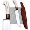 Rarissime et très belle variante du sabre Yatagan, grande dague/poignard de type court. La poignée est corne blanche, avec trois rivets de chaque côté, assez solide, incrustée de couleurs orientales, gravée sur les côtés et sur le commencement de la lame. La lame est en très bon état de conservation, encore brillante Le fourreau est en cuir, en bon état. Une magnifique et rare pièce, totalement original et rare dans cet état !