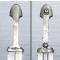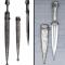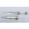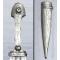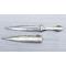 Superbe et rare kindjal cosaque russe. La poignée est en métal argenté deux rivets blancs, sans jeu, en bel état, quelques petites fissures sans gravité. La lame comporte plusieures gouttières centrales, avec une inscription (probablement géorgienne) en bel état également, lame assez épaisse et solide. La fourreau est en métal argenté, lui aussi, avec des gravures faites à l'aiguilles. La pièces est vraiment très belle en superbe état et totalement originale, dans son jus, XIX.