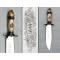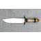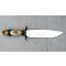 Superbe et grand et massif couteau/poignard à tête d'ours de type chasse. Manche en bakélite blanc, finement décoré, très solide, sans jeu. Avec une tête d'ours finement décorée et gravée également. Lame assez propre, avec une gravure en son centre sur le côté droit '' HOPE 1849 FORTITUDE ''. Autrefois, il y avait l'étiquette d'approbation du fabricant '' Crafted in Malaysia ''. Marqué au talon '' F M ''.