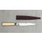 Très beau et superbe '' Kard '' . La poignée est de couleur blanche petit fissure visible sans gravité. La lame est an acier avec une seule gouttière, dans son jus, à nettoyé. Fourreau en cuir brun bordeau en bon état. Poignard très beau et très solide, rare dans cet état de conservation. Pratiquement introuvable sur les sites de vente classique. Une très belle et somptueuse pièce qui commence à se faire rare ! Très agréable à tenir en mains et encore plus à observer en vitrine ! 100% original ! ! ! Un vrai travail d'orfévre qui pourra à merveille décorer votre collection de dagues ancienens et de couteaux.