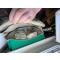 PETITE MUSETTE " D'ASSAUT" POUR TROUPE ALPINE OU DE MONTAGNE , MUSETTE AMOVIBLE POUVANT SE PORTER AU CEINTURON OU SUR LE SAC DE MONTAGNE. LANNIÈRES EN CUIR ET BOUCLES MÉTALLIQUES. PASSANTS CUIR DE CEINTURON ,