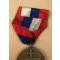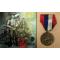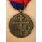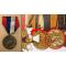Médaille " Pour la bataille en Courlande ", en 1919. Le général Bermont-Analov, pour tous les gradés qui ont pris part aux hostilités sur le territoire de Courlande, a établi une médaille commémorative portée sur un ruban noir et orange de 25 mm de large (type saint-Georges). On retrouve ainsi, sur cette médaille en bronze doré d'un diamètre de 32 mm, Saint Georges terrassant le dragon avec sa lance et la croix orthodoxe avec la date " 1919 " de l'autre côté.