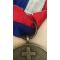 Très jolie médaille en bronze. On retrouve sur le côté face '' Saint-Georges '' et de l'autre côté '' la croix orthodoxe avec la date 1919 ''. Le tout est relié à un cercle reliant la médaille à son ruban tricolor aux couleurs de la Russie impériale. Modèle probablement commémoratif, produit en émigration dans les années 1940-1960 (?), info à vérifier, car différent du modèle réglementaire présent dans les livres se portant avec le ruban de Saint-Georges. Très agréable à tenir en mains et encore plus à observer en vitrine.
