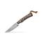 Le manche en pakkawood marron, soigneusement toxifié à la main, assure une prise en main confortable et sécurisée tout en offrant un design unique à chaque pièce. Ce matériau noble et robuste apporte chaleur et authenticité à ce couteau d'exception.