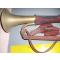 TROMPETTE ANCIENNE avec sa PASSEMENTERIE (Soit de l'ARMEE ou FANFARES) . Objet recupere de grenier la passementerie est poussiereuse .