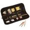 Nécessaire de nettoyage complet pour carabine comprenant : 1 baguette métallique démontable en 3 parties, 1 blister de 3 écouvillons, 1 pinceau, 1 bouteille d'huile 25 ml, 1 tube de graisse, 1 pochette de lingettes. Livré en trousse tissu.