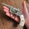 Beau nickelage d'origine deux atténuation localisée sur la carcasse, traitement fire blue d'origine sur la queue de détente, la visserie et le chien. Plaquette en nacre naturelle avec de magnifiques reflets sans usure ni accident .