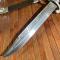 Très Beau poignard baïonnette Bouchon. Fusée sculptée dans une très belle corne veinés sans accident ni usure, La garde en fer présente deux quillons inversés , très belle lame de type bowie à un tranchant gravée sur toute la longueur des deux faces de feuillages et gravée des inscriptions: "1866 Frabrica de Toledo" et "Para la Caza Imperial". Foureau en cuir à deux garnitures en fer. Longueur de la lame 25 cm, longueur totale 40 cm. Trés Bel état.