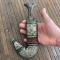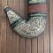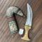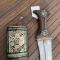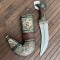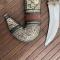 Manche en corne ornementé de fils d'argent, fourreau cuir décoré de fils d'argent.