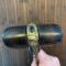 Très Beau SABRE EMPIRE OTTOMAN YATAGANS EMPIRE OTTOMAN sabre yatagans : avec plaquettes de fusée en corne avec trois rivures laiton. Lame gravée en incrustation d'argent d'une frise et sur l'autre face d'une signature dans un cartouche ? , . Virole et talon de la lame ornés de feuille laiton travaillé au repoussé et au talon, une pierre bleu type saphir bleu .