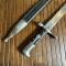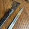 S.J.G NEUHAUSEN , beau marquage, plaquettes très bon état, lame superbe sans oxydation dos à dents de scies , bouton fonctionnel, dans son fourreau en cuir à deux garnitures fer chape poinçonnée 77 et son gousset en cuir à Blonay.