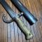 Belle poignée laiton en bon état, lame yatagan très belle état , bouton bien fonctionnel, marquage au dos de la lame "TULLE OCTOBRE 1874" un poinçon sur chaque face de la lame au ricasso et avec trois poinçons au quillon , le tout bien net.
