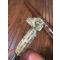 Lame légèrement courbe agrémentée de frise gravé et incrustation de laiton ,belle lame effilée et tranchante à fort contre tranchant, poignée traditionnelle en laiton ciselé travaillée de forme zoomorphe, fourreau bois de cèdre entièrement sculpté sur la face externe.