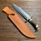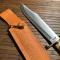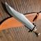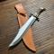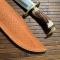 Manche en bois de cerf , gare de et pommeau en laiton , très forte lame Bowie de 31 cm et largeur max 6 cm et épaisseur 0,5 mm. Dans son fourreau cuir.