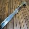 Lame légèrement courbe agrémentée de frise gravé et incrustation de laiton ,belle lame effilée et très tranchante contre tranchant au deux tiers , poignée traditionnelle en acier et laiton ciselé travaillée de forme zoomorphe,