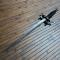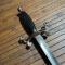 Fusée en bois d'ébène avec fêle , insert en argent gravé d'une rosace, pommeau sphérique , quillons joliment stylisé, forte lame triangulaire à pans creux de 34 cm et 2 cm de large .