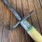 Manche en ivoire avec une fêle sans jeu , virole argenté avec gravure et symbole en relief, garde à quillons droit, longue lame quadrangulaire.