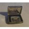 TRÉS PETITE BOITE EN MÉTAL AVEC TAMPON,motif un voilier, longueur 4,5 cm, Largeur 3 cm, hauteur environ 1 cm, le genre chromage est trés abimé, voir photos , il y a un tzmpon dedans, l’inscription est trés difficie à lire ( je vois marqué peut-être " Mairie " et " nécéssité "....)