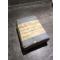 La boîte est dans un état d'usure avancé mais reste solide. Il y a un morceau de papier à l'intérieur pour maintenir la forme et éviter qu'elle ne s'applatisse.