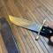 Tres rare tout premier couteau de survie de l'US Army Air Corps a été adopté en 1934 pour être utilisé dans le kit de « sauvetage » des aviateurs stationnés dans des climats tropicaux comme Hawaï, Panama et les îles du Pacifique. Le couteau original était le No 18 Machete, fabriqué par Collins & Company. La variante originale avait une lame de style Bowie à pointe clip qui variait de longueur. La variante fabriquée par Collins a été initialement produite avec des plaquettes en corne qui étaient fixées par des rivets en laiton et avaient une protection en laiton avec des embouts en forme de lobe à l'extrémité qui ressemblaient presque à une barre. Au cours de la production du Collins V-44, quatre variantes ont été produites. Les deux premiers utilisaient des plaquettes en corne, initialement fixées par des rivets en laiton, comme indiqué, et la seule différence était le type d'estampage de la lame identifiant le couteau et le fabricant. Les troisième et quatrième versions ont remplacé la poignée en corne par de la bakélite, initialement fixée par des rivets en laiton et la variante finale fixée par des rivets en acier la plus rare comme celui-ci . Ce couteau de survie V-44 particulier porte la marque CASE XX, indiquant sa fabrication par W. R. Case & Sons Cutlery Co., qui fabrique des couteaux pour l'armée américaine depuis la Première Guerre mondiale. Le « double X » est un symbole de l'engagement de Case COMPAGNY envers la qualité qui remonte aux débuts de Case COMPAGNY où les lames étaient trempées et testées non pas une seule fois (X), mais deux fois (XX). Le « V-44 » proposé ici est en très très bon état. Le couteau mesure 38,5 cm de longueur totale, avec une lame Bowie à pointe clip à deux gorges de 25 cm , La lame est en très bon état quelques taches minimes que l'on peut nettoyer . Les larges plaquettes de poignée en bakélite sont noires lisse en très bon état. Le couteau est doté d'une garde transversale en forme d'haltère en laiton moulé typique de la plupart des couteaux V-44. Les poignées sont retenues par trois rivets. Impressionnant poignard robuste sans jeu très bien préservé . Le couteau conserve son fourreau en cuir d'origine qui est également en très bon état avec fixation de ceinture , comme tous les fourreaux sauf ceux livrés avec les couteaux occidentaux, celui-ci n'a pas de sangle de retenue de poignée. Le fourreau est du modèle correct et est cousu à l'arrière sans renforts supplémentaires ni coutures de bord. Le fourreau est complet et solide, avec toutes ses coutures. Dans l’ensemble, il s’agit d’un très Belle exemplaire du couteau de survie « V-44 » classique de la Seconde Guerre mondiale. La variante Kinfolks Cutlery est un couteau extrêmement rare et le plus difficile à trouver à la vente, notamment en bon état. Ce serait un excellent ajout à toute collection avancée de couteaux militaires américains.